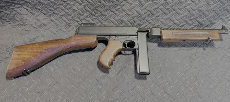 Hier verkaufe ich aus meiner Sammlung ein echtes HighLight und Rarität: eine Modell Thompson Maschinen Pistole 1928A1. Die Waffe ist aus Vollmetall und alle Schaftteile aus Holz.