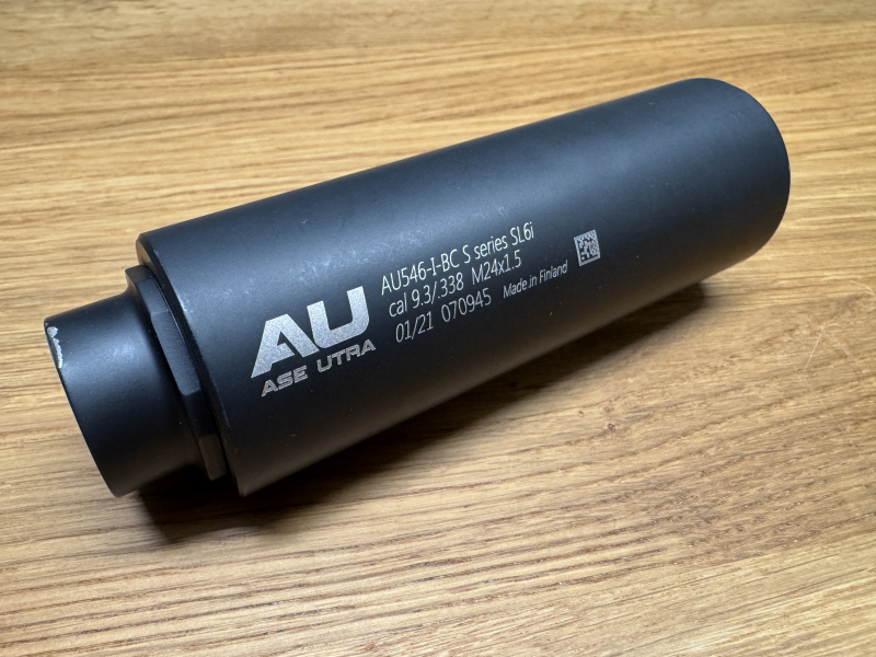 Zur Versteigerung kommt ein Stahlschalldämpfer des finnischen Spezialisten Ase Utra, der speziell für Kalschnikow-Klone konzipiert ist. Er passt ohne Adapter auf Büchsen mit mündungsbündigem 24x1,5mm-Gewinde. Die großzügige 9,3mm Bohrung trägt dem Umstand Rechnung, dass nicht bei allen AK-Klonen Seelenachse und Mündungsgewinde völlig konzentrisch sind. Nach Angaben des Herstellers beträgt die Dämpfung 18-22 dB. Subjektiv nimmt der Dämpfer sowohl Knall als auch Rückstoß jede Schärfe. Mit ca. 400 Gramm ist der Dämpfer für eine robuste Stahlkonstruktion auch relativ leicht. Ich habe mit dem Dämpfer ein paar Schuss gemacht, der Kratzer am Gewindehals in der schwarzen Cerakote-Beschichtung stammt aus dem Waffenschrank.