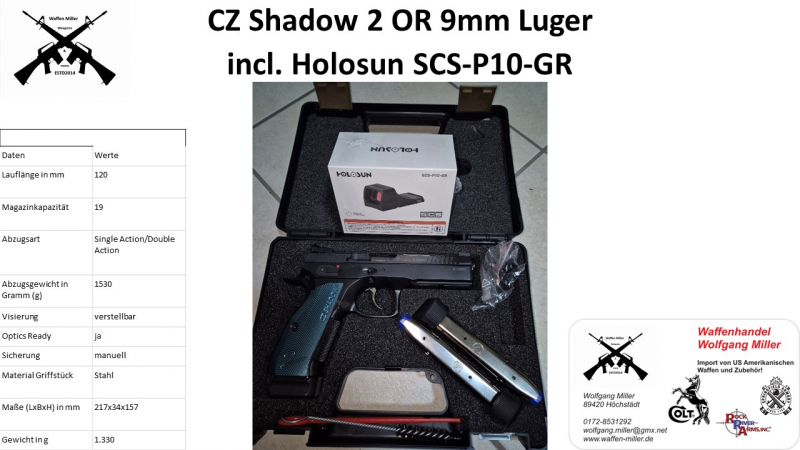 Biete eine Pistole des Herstellers CZ, Modell Shadow 2 OR inklusive passendes Red Dot der Herstellers Holosun Modell SCS.