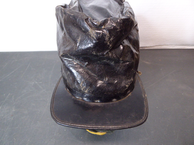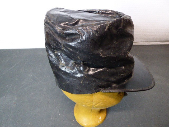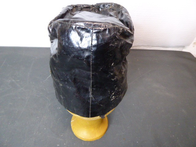 Aus meiner Sammlung gebe ich, ein alten hohen unbekannten Tschako oder Mütze Original? mit zwei Knöpfe ab. Kenner werden es sicherlich wissen was das für ein Tschako oder Mütze ist. Wahrscheinlich Original. Korpus besteht aus schwarzen Lederähnlichen Material mit schwarzen Innenfutter und Schweißband. Das Teil müsste mal gründlich gereinigt werden. Alles andere entnehmen Sie Bitte den Fotos. Kann zu jederzeit bei mir besichtigt werden. Privatauktion keine Rücknahme und Garantie.