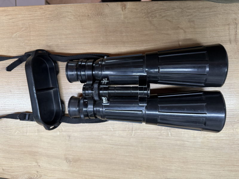 Leichte Kratzer auf den Okularen und Objektiven, was aber nicht auffällt beim Durchsehen. Ist halt vom Saubermachen über die Jahre. Auf der Rückseite ist eine kleine Kerbe im Gummi damit wir es damals von dem zweiten Glas unterscheiden konnten. Original Halsgurt dabei. Keine Garantie und Gewährleistung und Rücknahme. Versand trägt der Käufer, Auslandversand entspr. teurer. Abholung geht auch.