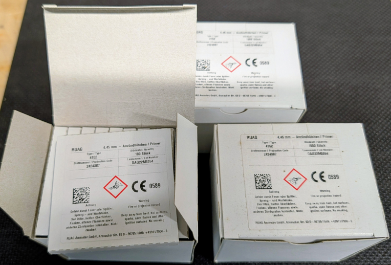 Angeboten werden 3 Packungen Zünder Small Pistol aus deutscher Produktion, der Firma RUAG im Neuzustand, á 1000.