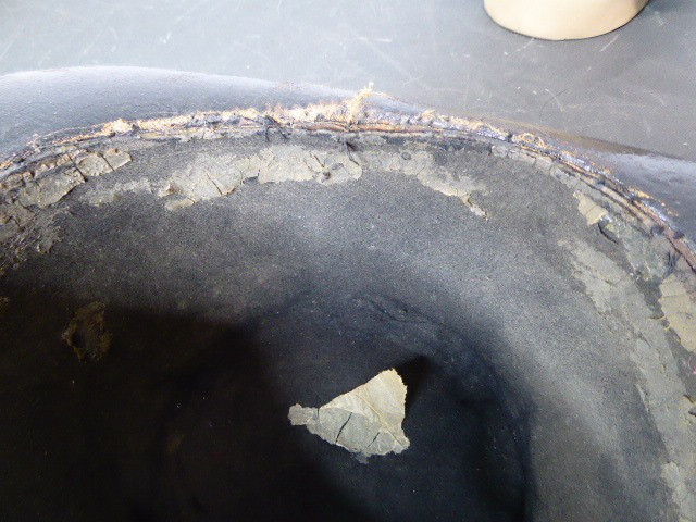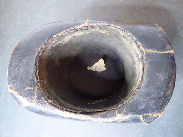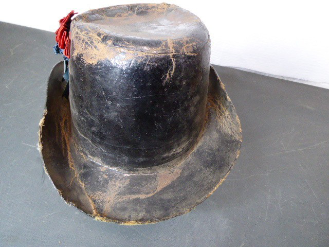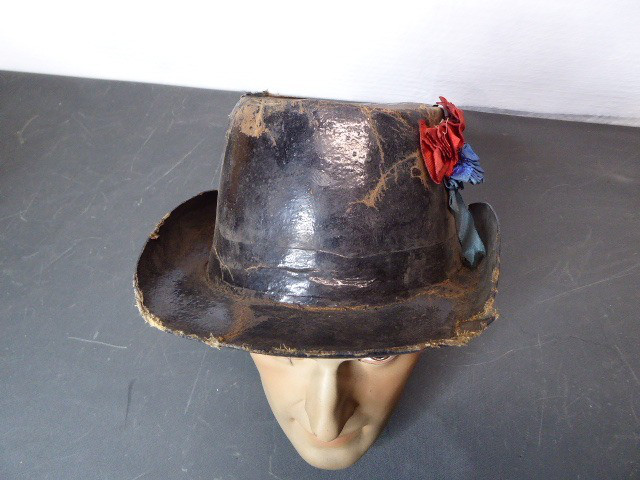 Aus meiner Sammlung gebe ich, ein originalen? unbekannten schwarzen Hut Frankreich? mit rot, blau und hellblauer Schleife als Nationale ab. Kenner werden es sicherlich wissen was das für ein Zweispitzhut ist. Ich denke mal das Teil ist Original. Korpus besteht aus Pappe? mit schwarzem Lack überzogen. Das Teil müsste mal gereinigt und in Form gebracht werden. Alles andere entnehmen Sie Bitte den Fotos. Kann zu jederzeit bei mir besichtigt werden. Privatauktion keine Rücknahme und Garantie.