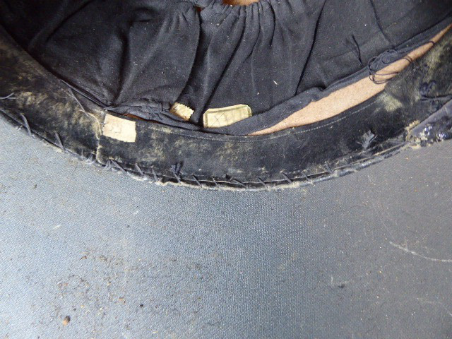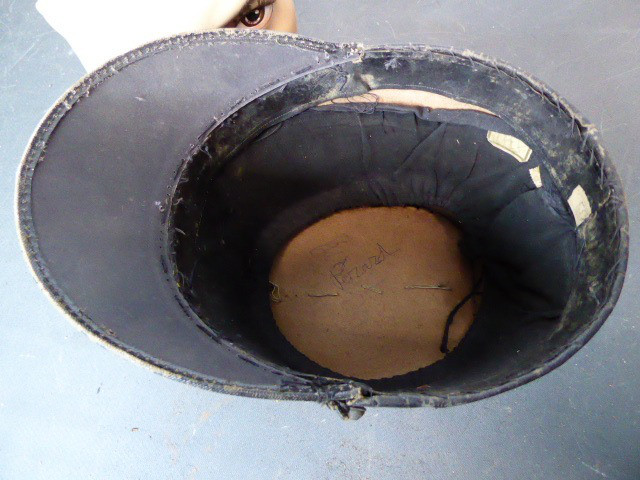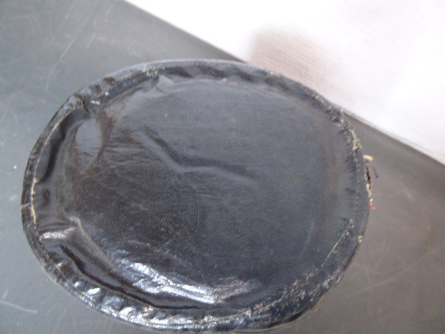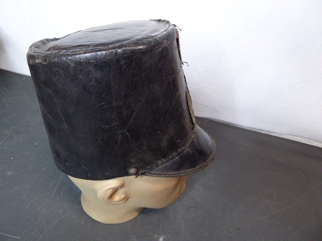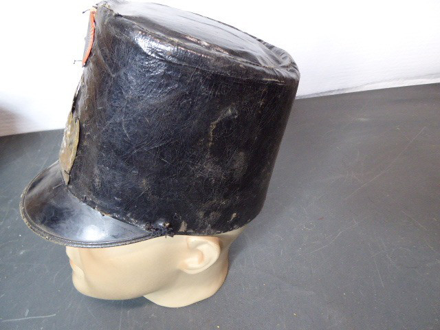 Aus meiner Sammlung gebe ich, ein alten unbekannten Tschako mit Schirm aufgesetzten Adler aus Blech und Nationale ab. Kenner werden es sicherlich wissen was das für ein Tschako ist. Wahrscheinlich aus Originalteilen für Film und Fernsehen zusammengebaut worden. Korpus Innen Originales Innenfutter und Schweißband außen Leder ähnlich Gelacktes Leinen? an der Seite noch ein Knopf mit geprägtem Trompeter Horn Vorne angebrachte Auflage aus geprägten Messingblech Adler und Nationale. Mit etwas Geschick kann man das Teil sicherlich wieder Herrichten. Alles andere entnehmen Sie Bitte den Fotos. Kann zu jederzeit bei mir besichtigt werden. Privatauktion keine Rücknahme und Garantie.