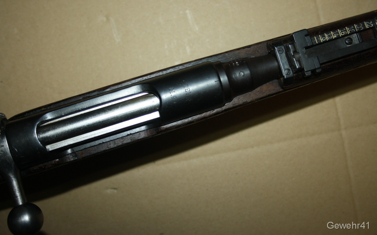 Sie bieten auf diese lange Steyr M95 Gewehr im Kal. 8x56R. Es ist im guten, altersgemäßen Zustand und hat einen gültigen Beschuss. Der Lauf ist wie üblich rauh. Die Funktion ist einwandfrei.
