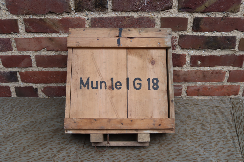 Munitionskiste für drei Granaten + Hülsen des 7,5cm LIG 18 Geschützes der Wehrmacht. Stark vereinfachte Endkriegsfertigung von 1945! Original Inneneinteilung.