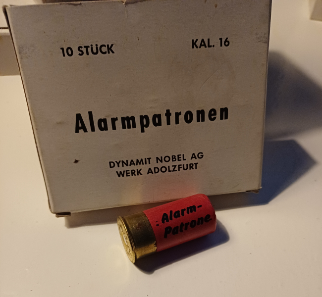 Biete 170 Alarmpatronen von Dynamit Nobel AG an. Es handelt sich um Kaliber 16.