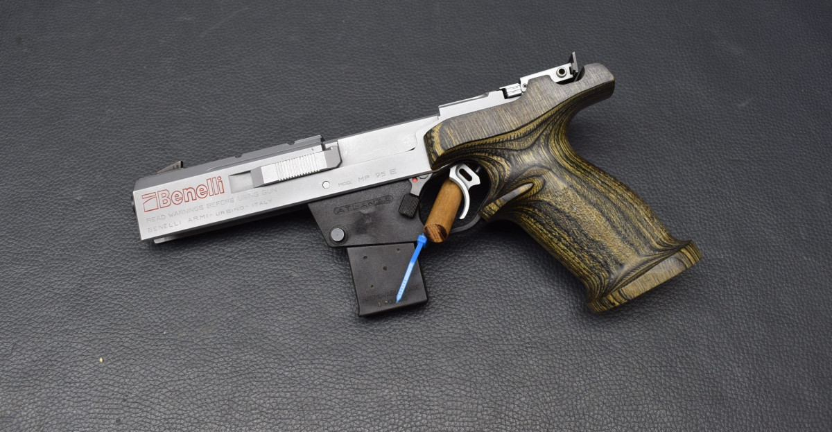 Holzgriffschalen mit Daumen und Handballenauflage.