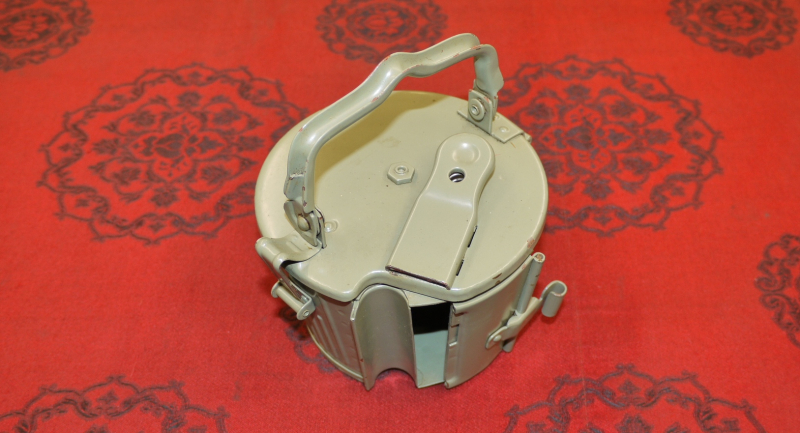 - Original MG53 Gurttrommel aus jugoslawischer Fertigung in gutem Arsenalzustand. Absolut baugleich mit MG34/MG42-Gurttrommel, da auf deutschen Maschinen gefertigt. Lediglich ohne WH Stempel und mit grünem Jugolack. - Passend für 50 Schuss gegurtete 8x57JS Munition auf Gurten der Modelle MG34, MG42, MG53, MG1, MG2, MG3, etc.