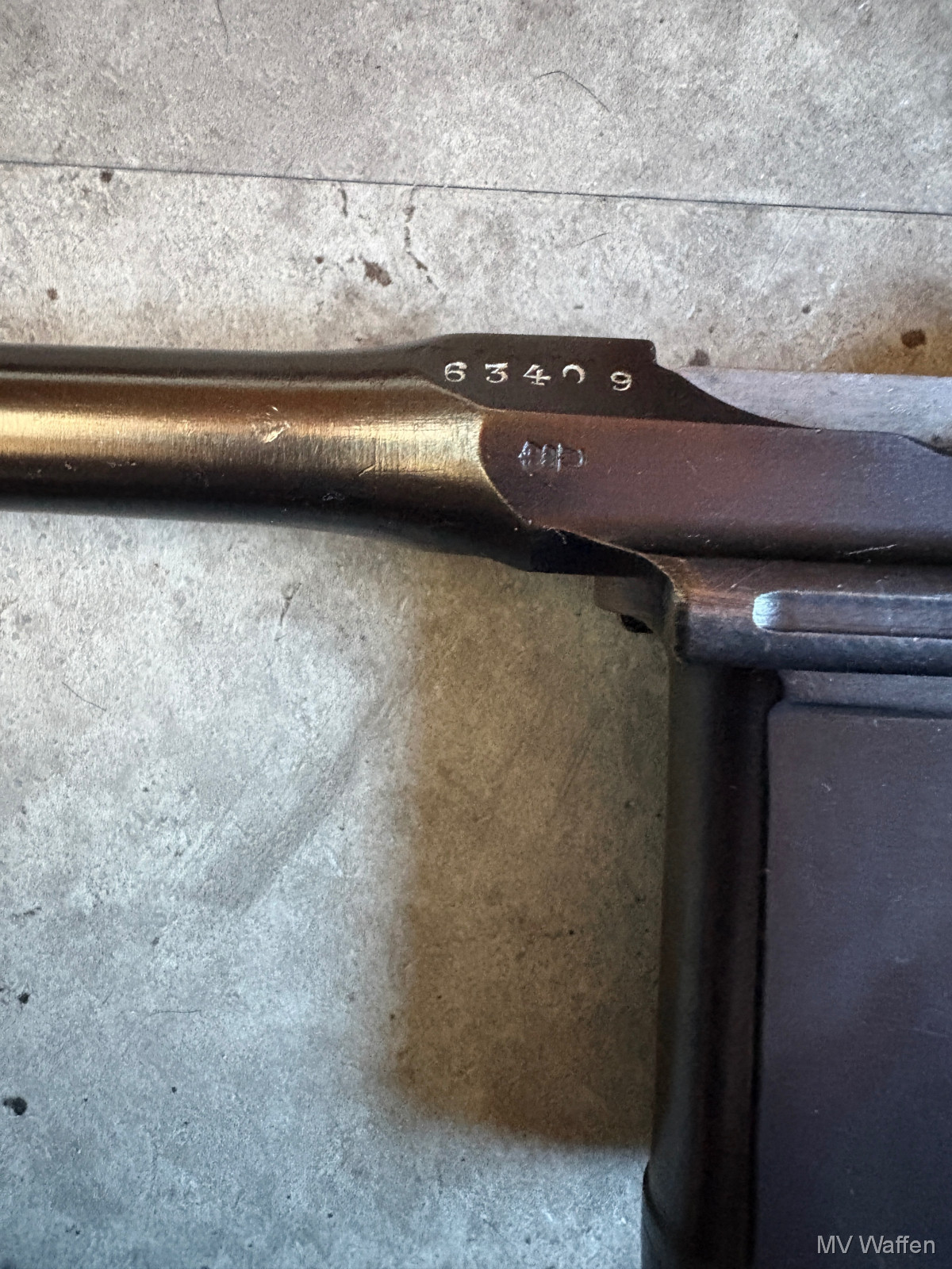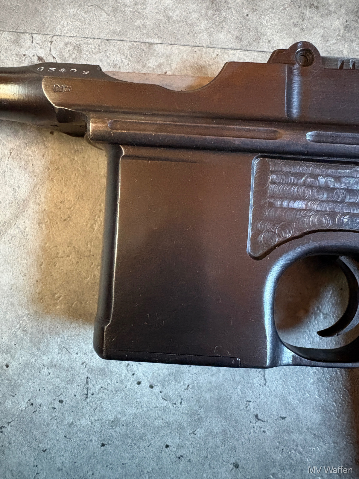 Sehr schöne und seltene C96 rote 9 in Kaliber 9mmLuger. War Jahrzehnte Teil einer Sammlung. Waffe wurde nicht Probegeschossen, dennoch alle Funktionen gegeben. Interessante Waffe für Sammler. Mittlerweile selten zu bekommen. Leider ist die Fangöse nicht original, die originale ist im Laufe der Zeit verloren gegangen. Schöner Zustand wie auf den Bildern zu sehen. Waffe ist Nummerngleich. Zuschlagen bei der Gelegenheit. Direktversand an Europäische Händler möglich. Fragen Sie bitte nach den Versandkosten. Wie immer völlig unbearbeitet um Ihnen einen ehrlichen Eindruck des Zustandes zu ermöglichen.. Diese Sammelwaffe kann natürlich gerne, nach vorheriger Absprache in Wolfratshausen besichtigt werden