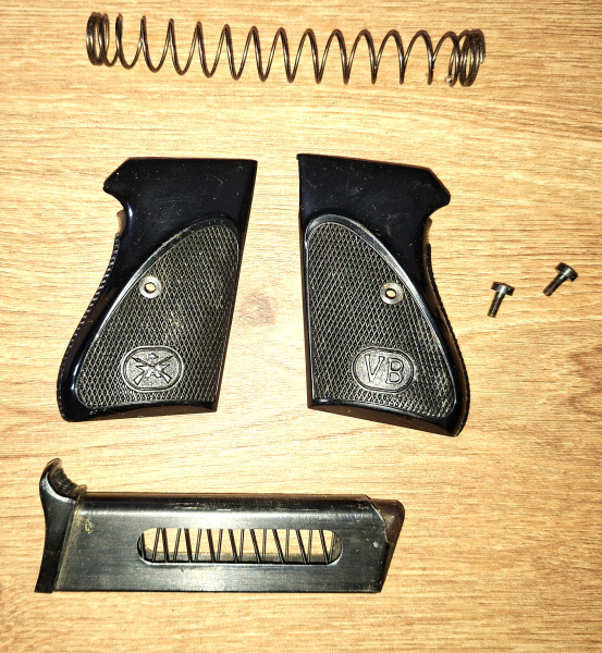 Zum Verkauf kommen hier: Griffschalen mit Schrauben, 1x Magazin sowie eine Verschlussfeder für eine Bernadelli Pistole (7,65mm). Modell Unbekannt! Weitere Details s. Bild! KEIN VERSAND INS AUSLAND!! Anfragen aus dem Ausland/EU werden nicht mehr beantwortet und Bieter werden umgehend gesperrt! (Aufgrund einiger schlechten Erfahrungen ist dieses leider erforderlich! Lieferung / Rechnungsanschrift NUR innerhalb der BRD!! Der Versand erfolgt nach Zahlungseingang an Sie !! Keine Abholung möglich! Gemäß § 19 UStG erheben und weisen wir keine Umsatzsteuer aus (Kleinunternehmerstatus).ACHTUNG!! VERSENDE NICHT INS AUSLAND AUCH NICHT IN ANDERE EU-LÄNDER!!!!Anfragen zwecklos!! Die angegebene Versandkosten stehen fest und sind NICHT verhandelbar! Wem das nicht passt, bitte hier NICHT bieten!! BITTE BEACHTEN!!! KEIN VERSAND INS EU/AUSLAND!!! Bei dem ersteigern von mehreren Artikeln können sich die Versandkosten aufgrund eines evtl. Höheren Paket Gewicht erhöhen.