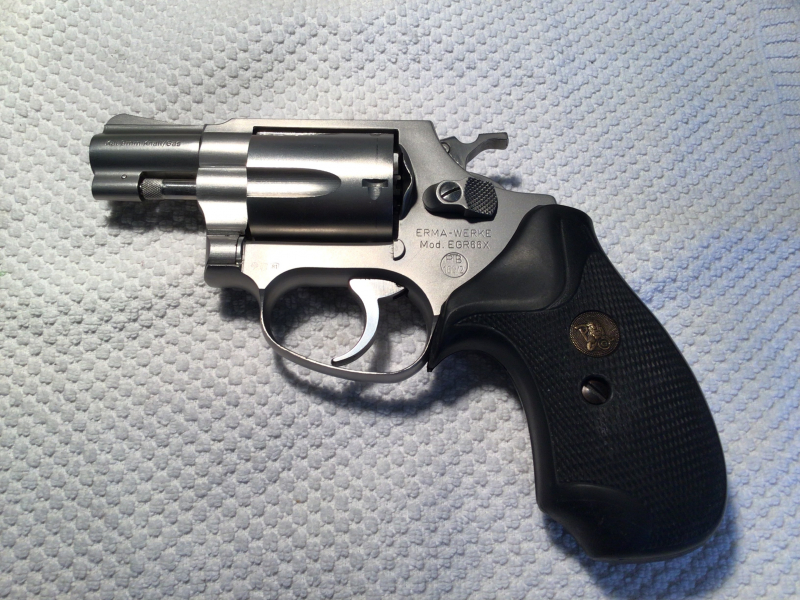 Hallo,zum Verkauf steht ein fast jungfräulicher Revolver,ein ERMA 66X mit der PTB 162/2 aus Edelstahl,aus dem Jahr1981,kommt mit Pachmayrgriffschalen(originale liegen bei),Lederholster,Anleitung,leider kein original Koffer.