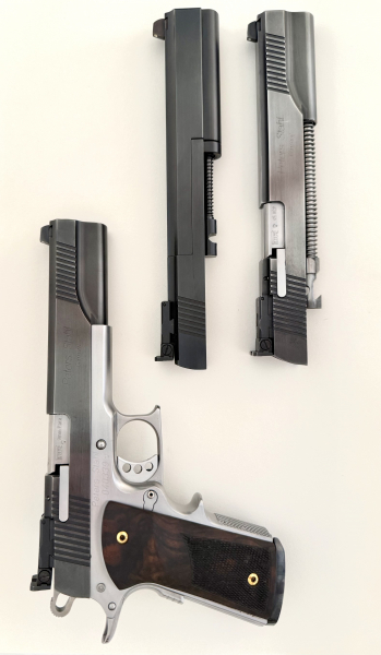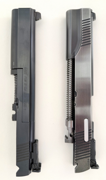 Die Waffe wurde ursprünglich in 2003 erworben und beide Wechselsysteme sind werkseitig auf das Griffstück angepasst. Minimale Gebrauchsspuren, absolut glatte Läufe und herausragende Präzision. Die Passungen sind absolut genau, d.h. die Schlitten sitzen bombenfest. Die Waffe wurde und muss immer mit Öl auf der Schiene geschossen werden, um den Zustand zu erhalten.