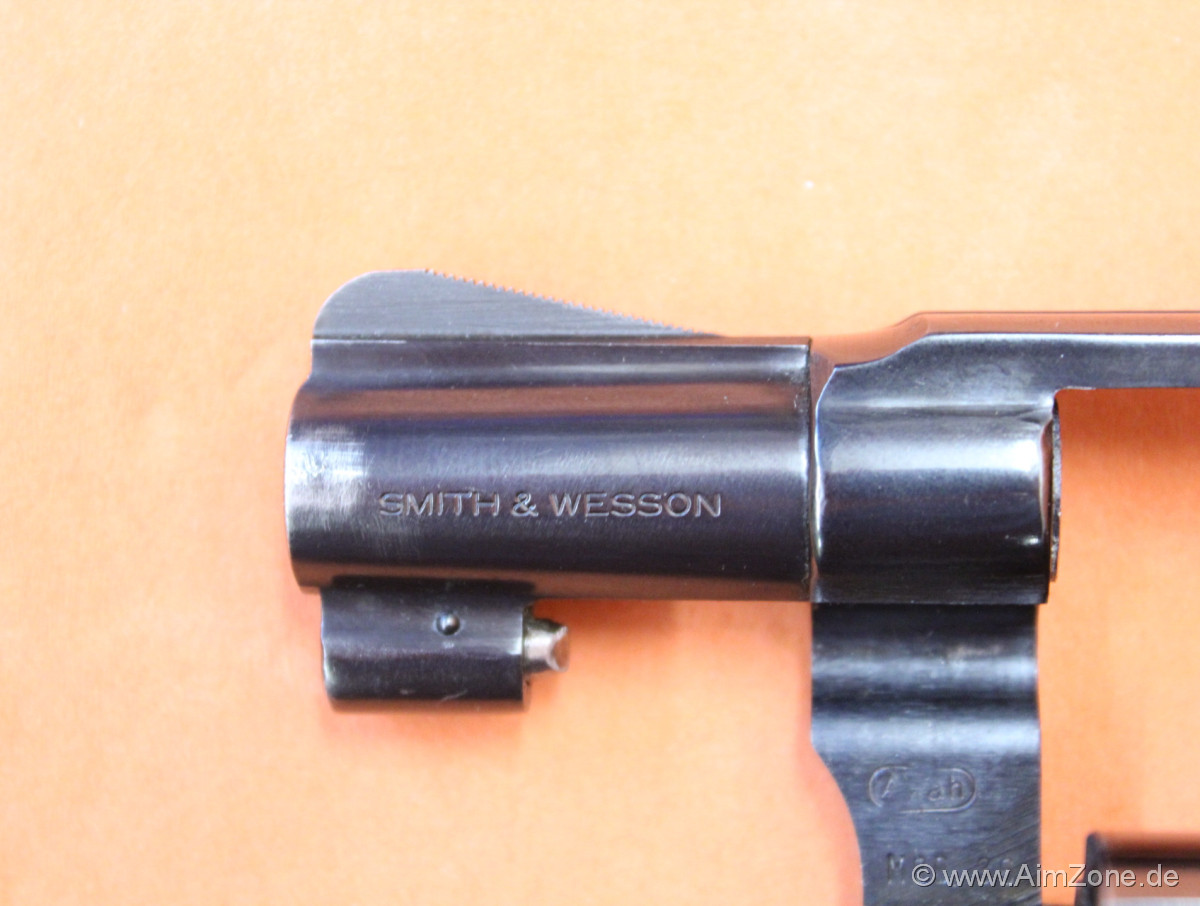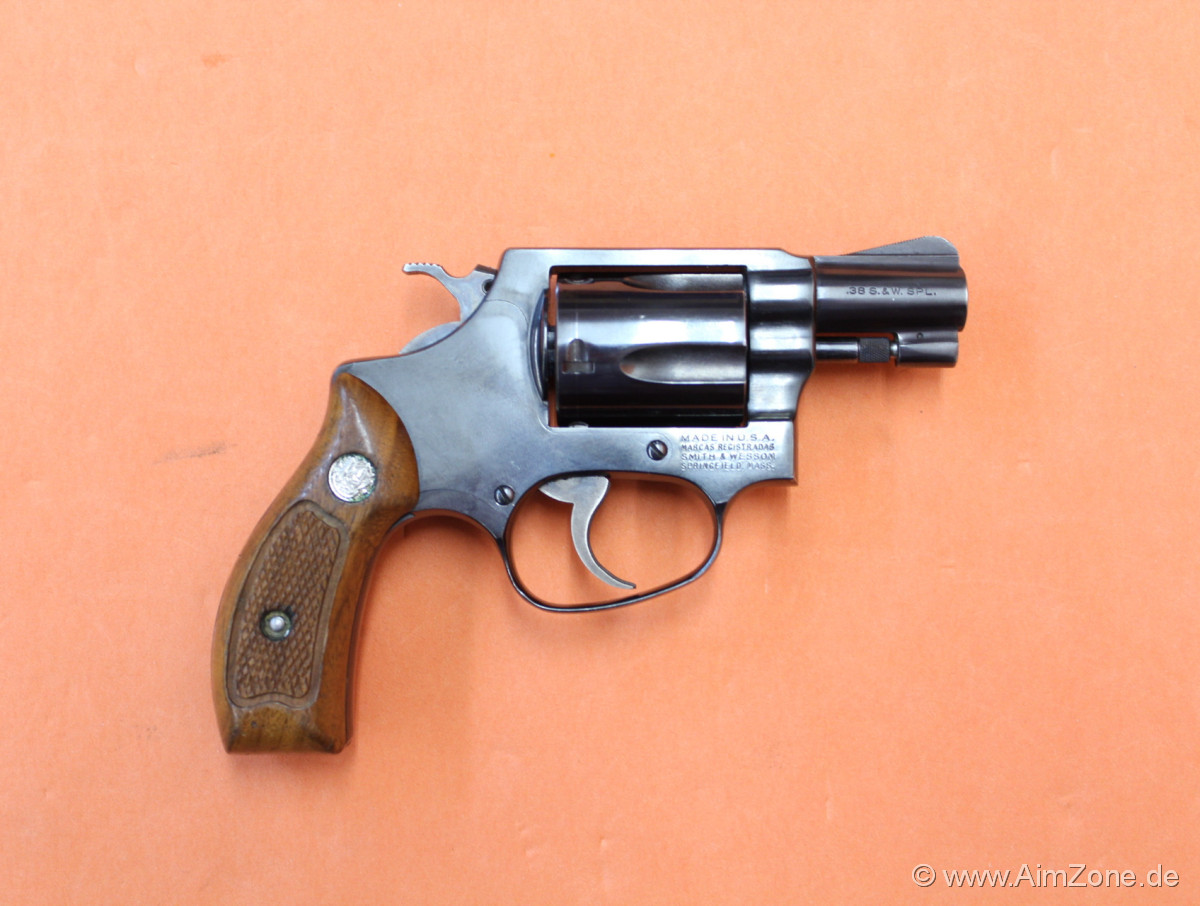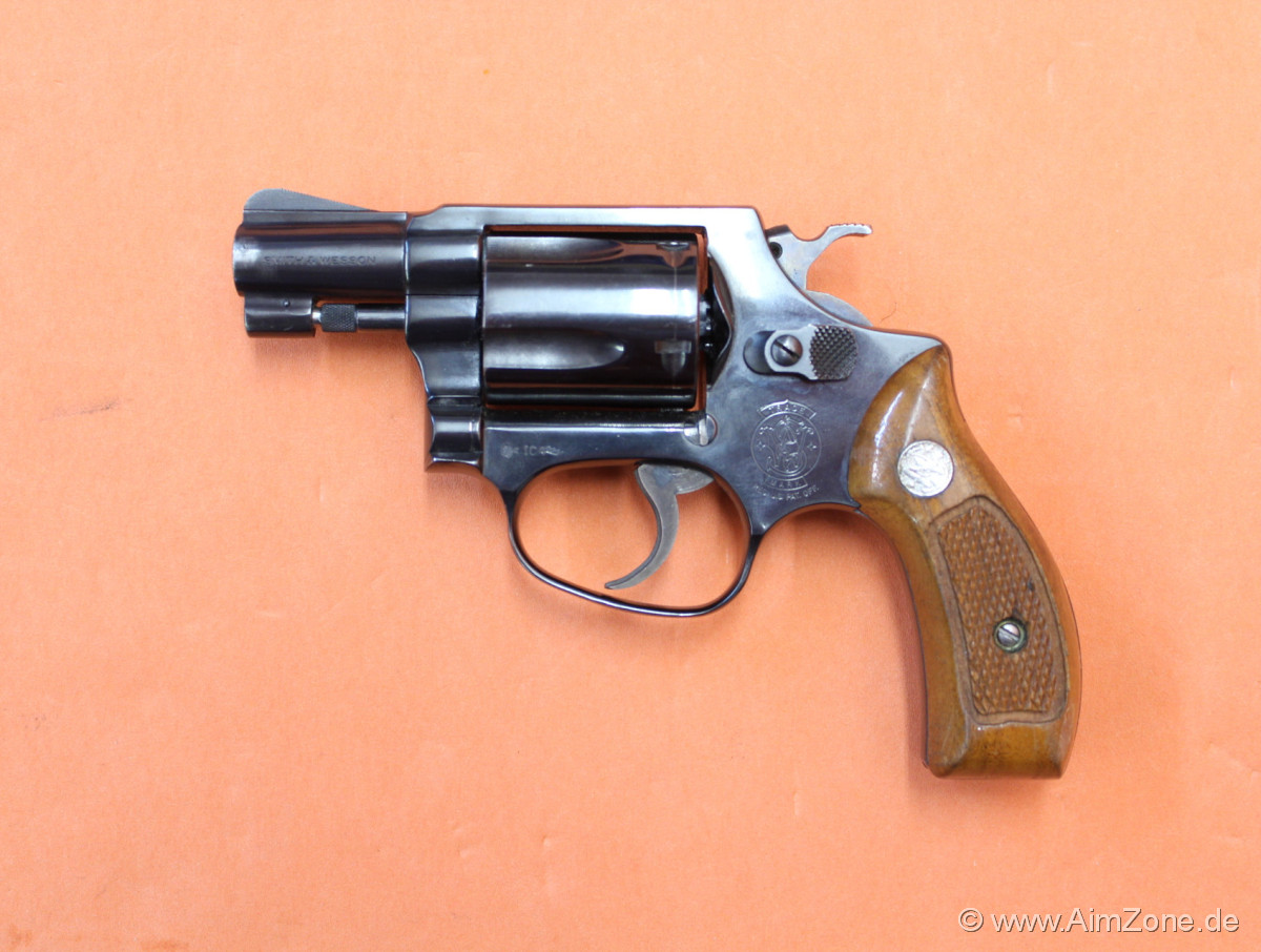 Ausführung brüniert, 1 7/8" Lauf mit Rampenkorn, integrierte, feststehende Visierung, 5-Schuss Trommel, DA/SA-Abzug, J-Frame, Holz-Griffschalen mit Fischhaut und Emblem. Gebraucht-/ Sammlerwaffe (ohne Zusicherung von mangelfreier Funktion/ Präzision). *Differenzbesteuerter Artikel nach §25a UStG*