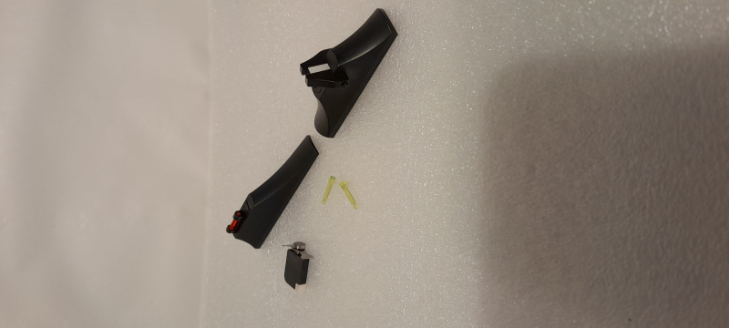 Dreieckige weiße Kimme und auswechselbare Leuchtkörner Fieberglas 2x gelb 1xrot inkl. Visier und Kimmensattel, Neuwertiger Zustand