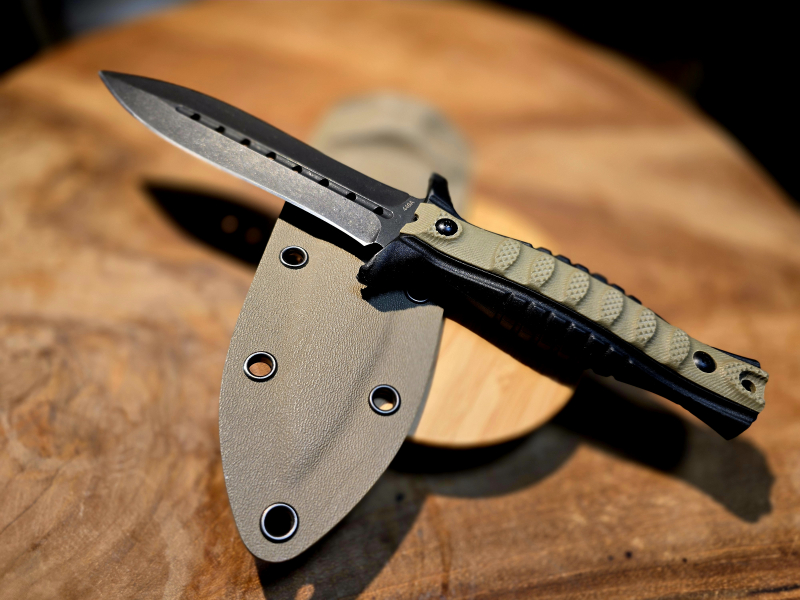 Kydex-Scheide: sehr guter, sicherer Sitz – das Messer rastet sauber ein und sitzt fest („schnackt“ richtig rein), wie es sein soll.