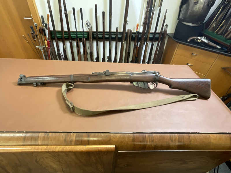 Zum Verkauf steht eine englische Repetierbüchse aus dem Zweiten Weltkrieg. Die Waffe befindet sich in einem schlecht gelagerten Zustand, ist jedoch technisch grundsätzlich solide.