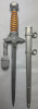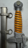 Luftwaffe Dolch für Offiziere mit Portepee: blanke Klinge ohne Hersteller, orangebraunes Griffstück mit intakter Wicklung, Vorkriegsfertigung, Beschläge aus Buntmetall, Scheide vernickelt, Embleme 100% erhalten, mit Münze abgedeckt, guter nur sehr leicht getragener Zustand.