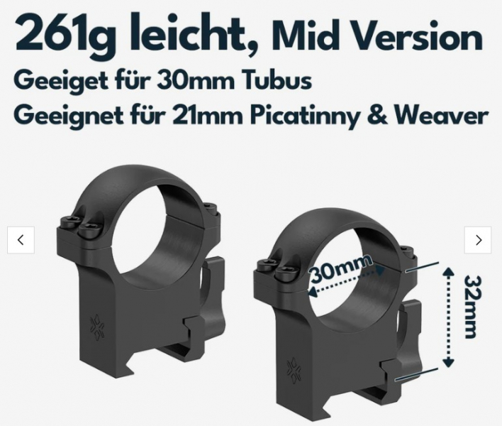 X-Accu Schnellmontage aus hochwertigem Stahl für 21mm Picatinny/Weaver und 30mm Tubus Durchmesser
