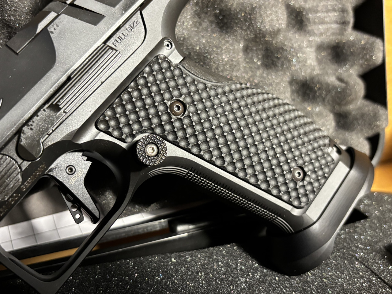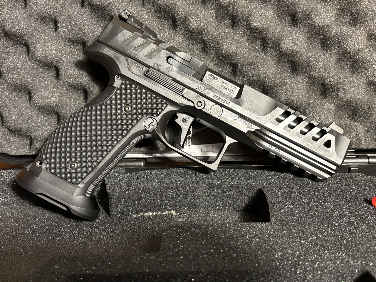 Die Black Ribbon setzt in der Kategorie der Supersportler neue Maßstäbe. Sie kombiniert die herausragenden Eigenschaften der Steel Frame Match mit wichtigen Elementen wie dem DPT Trigger. Diese Pistole bietet eine Mikrometervisierung für präzises Zielen und superaggressive Griffschalen, die für eine hervorragende Handhabung sorgen.