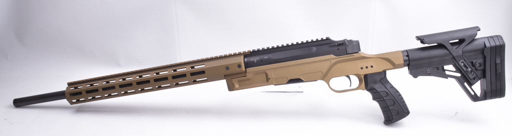 Die Waffe ist in klassischem Schwarz/Sand gehalten. Die HAENEL Repetierbüchse LR/ONE präsentiert sich mit einem ansprechenden und zugleich zweckmäßigen Design.