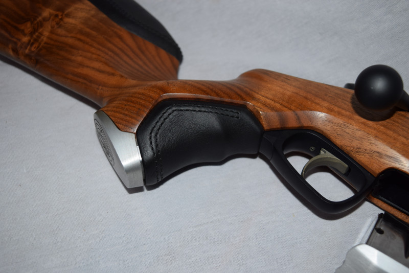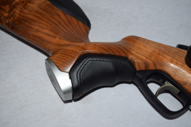 Toller optisch ansprechender Holzschaft mit echten handgefertigten Ledereinlagen. Alle Ledereinlagen lassen sich werkzeuglos tauschen.