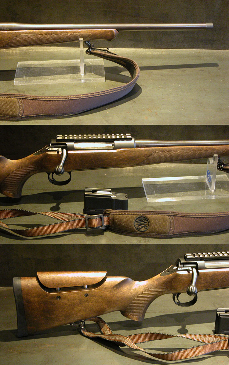 Weaver-Picantinnyschiene und einem braunem RWS Neoprene-Gewehrriemen