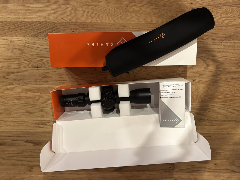 Verkaufe mein absolut neuwertiges ZF Kahles 318i 3,5-18x50 mit Absehen MSR/KI mit stufenlos dimmbarem feinem Leuchtkreuz. Zielfernrohr war ca. 2 Jahre auf meiner Steyr SM 12 Carbon 270 WSM montiert, dieses Kaliber habe ich in unserem Rehwildrevier nur sehr wenig geführt. Die Leupold QRW Montageringe sind Bestandteil der Auktion. Passend auf Weaver und Picatinny Montagen. Sehr gute Qualität mit Flügel für Schnellmontage und Abnahme ohne Werkzeug. Das Glas wird mit allem auf den Fotos ersichtlichen Zubehör, in Originalverpackung und unausgefüllter Garantiekarte verkauft. Highlights des Kahles K318i 3,5-18x50 • Ultrakurzes, leichtes Zielfernrohr • Absolut zuverlässige Wiederholgenauigkeit und präzise Mechanik • Großes Sehfeld und hochauflösendes kontrastreiches Bild • TWIST GUARD Verdrehschutz • Parallaxenverstellung im Höhenturm integriert • Leuchtabsehen in 1. Bildebene