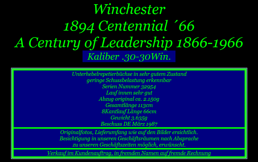 Artikel-ID: 20257161 ArtikelNr. des Verkäufers: 12484 Kategorie: Westernwaffen > Gewehre