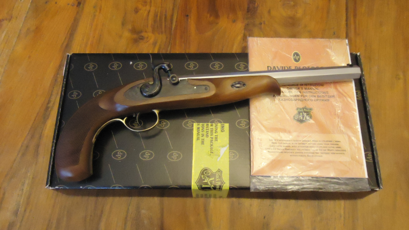 Vorderlader Pistole, Modell: Continental Target, Kaliber: .45 Black Powder von Davide Pedersoli + Anleitung + original Verpackung