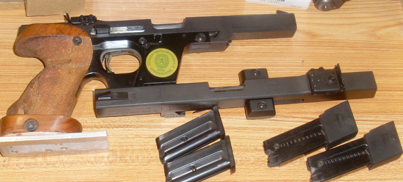 Walther GSP 32er Sportpistole mit 22er Wechselsystem , Lauf blank ,guter Zustand ,Griff grösse M .zum aufgelegt schiessen adaptiert ,kann man abschrauben je 2 Magazine