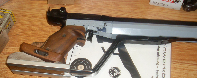 Feinwerkbau Lp100 4,5 mm Duckluft Matchpistole ,Guter Zustand guter Druck schon fürs aufgelegt schiessen adaptiert ,kann abgeschraubt werden (Dichtungen weiss man nie wie lange die halten ,von Garantie ausgenommen)
