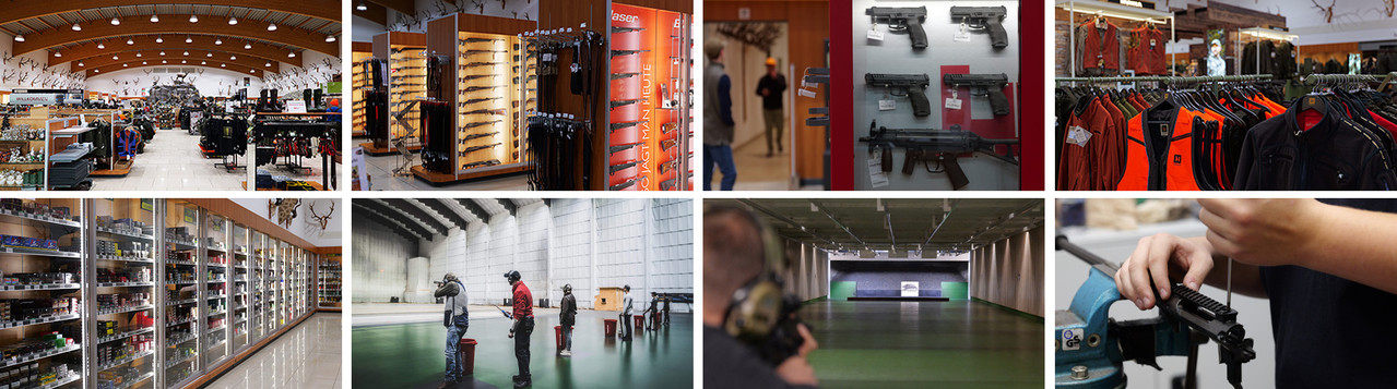 Bei uns erwartet Sie ein einzigartiges Erlebnis: Schießen, Shoppen, Staunen! Auf über 8.000 Quadratmetern bieten wir eine neue Dimension des Schießens. In unserem 1.200 qm² großen Ladenbereich finden Sie eine Auswahl an Waffen namhafter Hersteller wie Heckler und Koch, Anschütz, Krieghoff, Walther, Blaser, Browning, Steel Action, Sig Sauer und FN. Zudem führen wir Jagd- und Outdoorbekleidung, Munition sowie Zubehör für Sportschützen und Jäger.