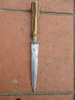 15,5 cm lange Klinge mit Mittelgrad, blank einige leichte Flecken, Schleifspuren, Solinger Herstellung, Parierstange, Hirschhorngriff, Gesamtlänge : 27,5 cm. Scheide fehlt. Porto Österreich 10 Euro, E-U Länder 18 Euro.