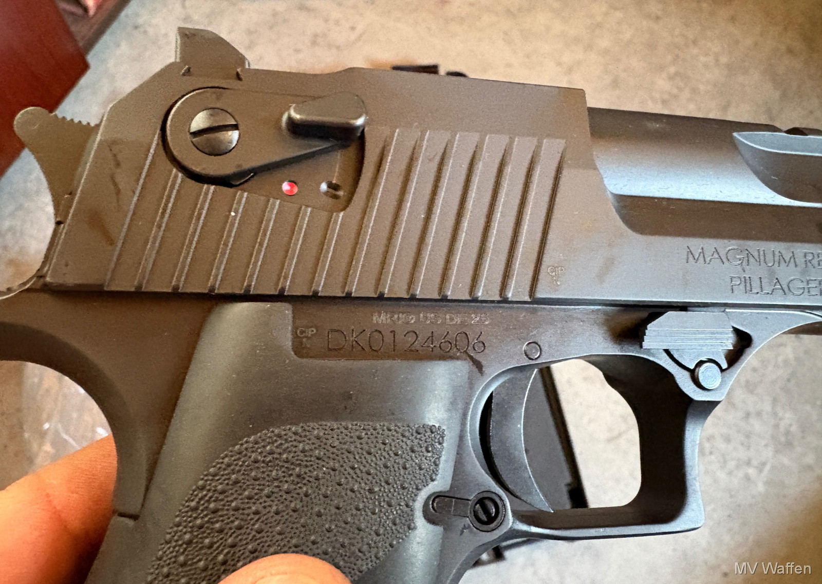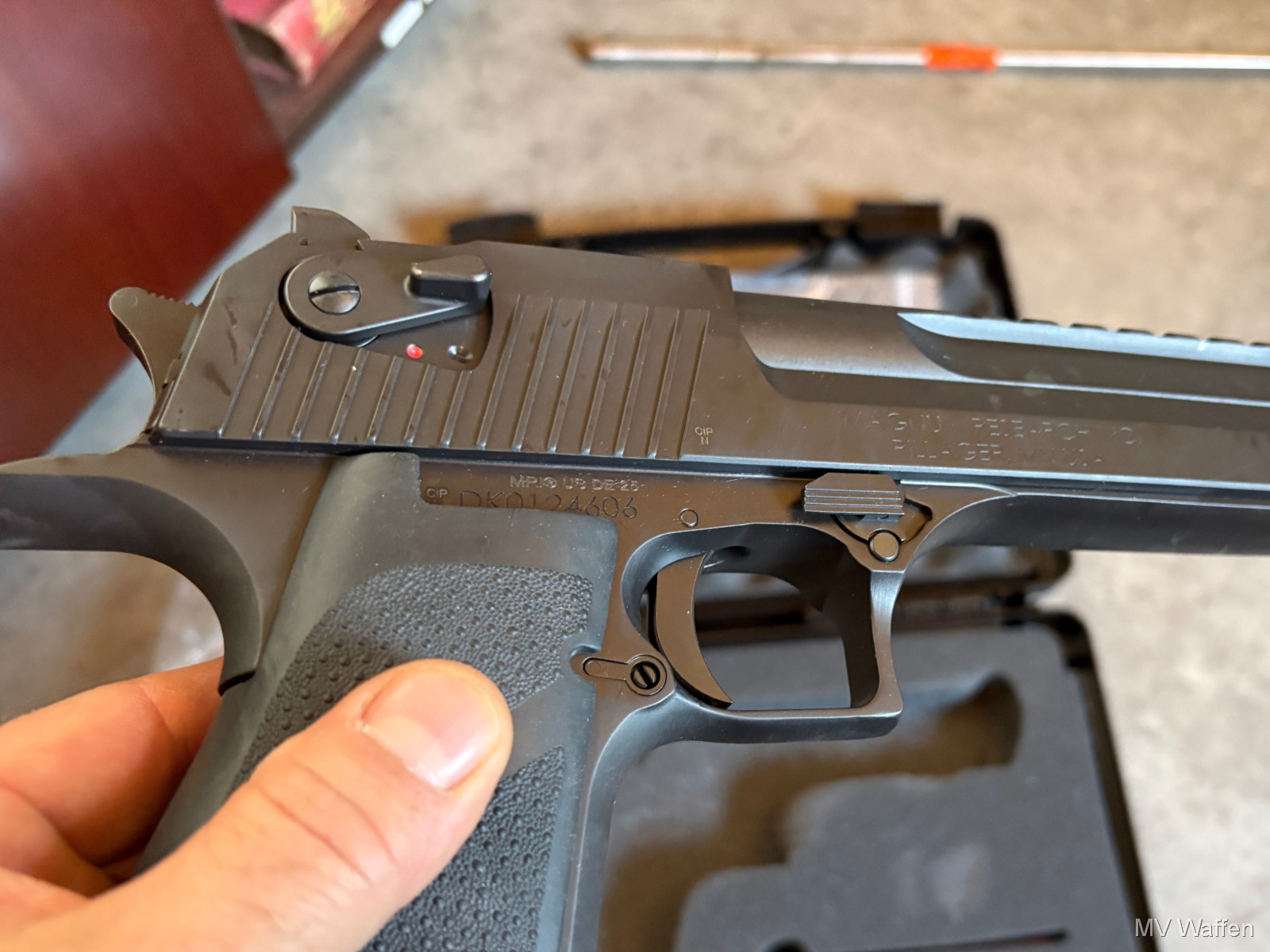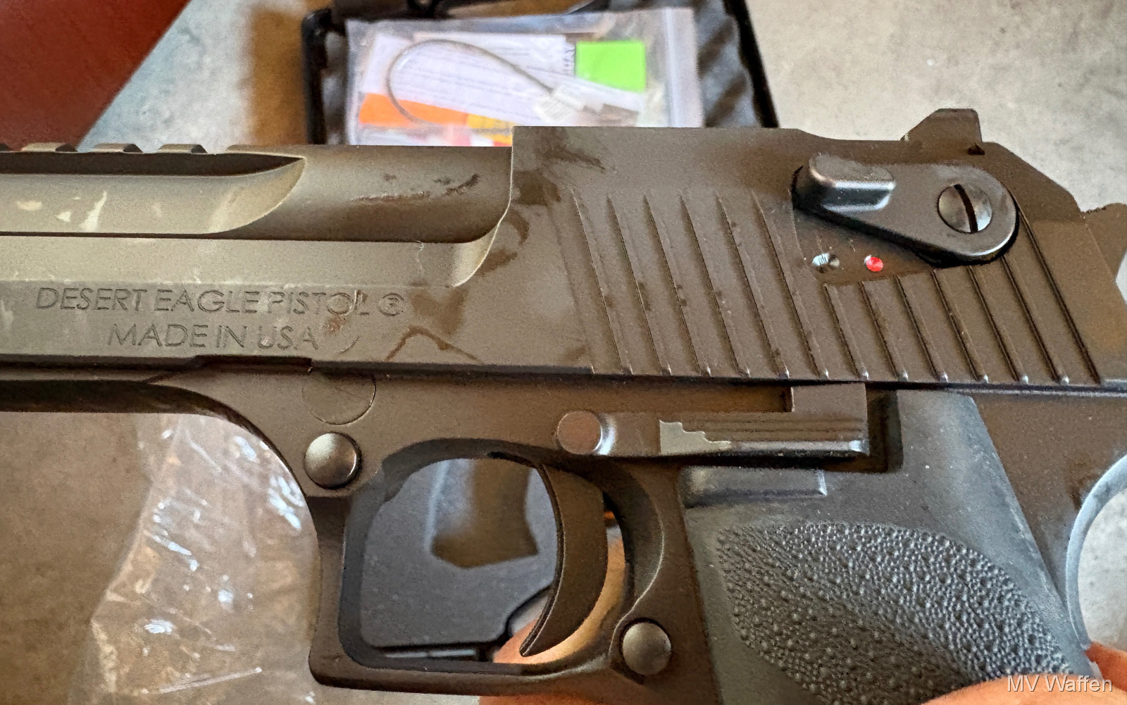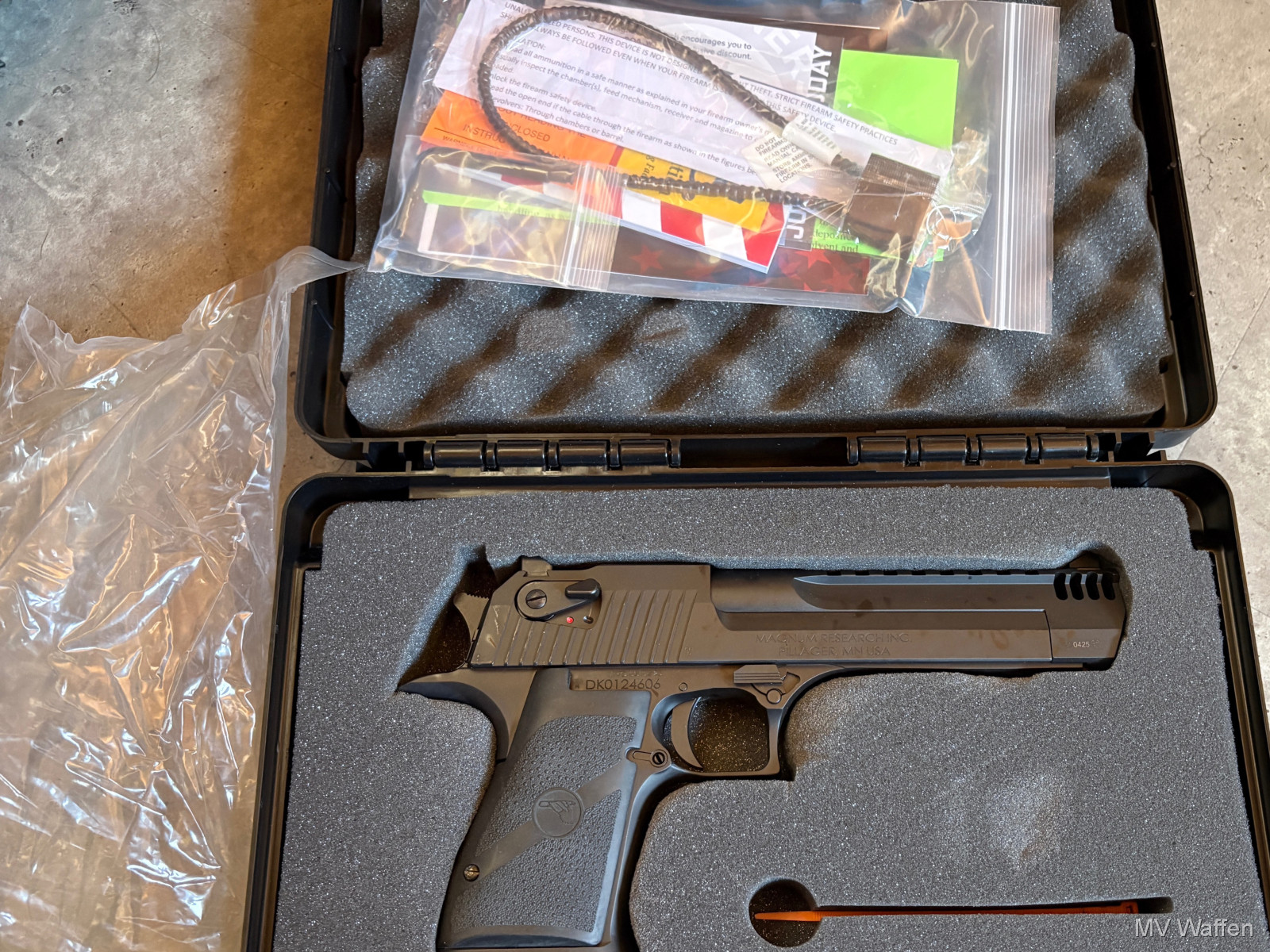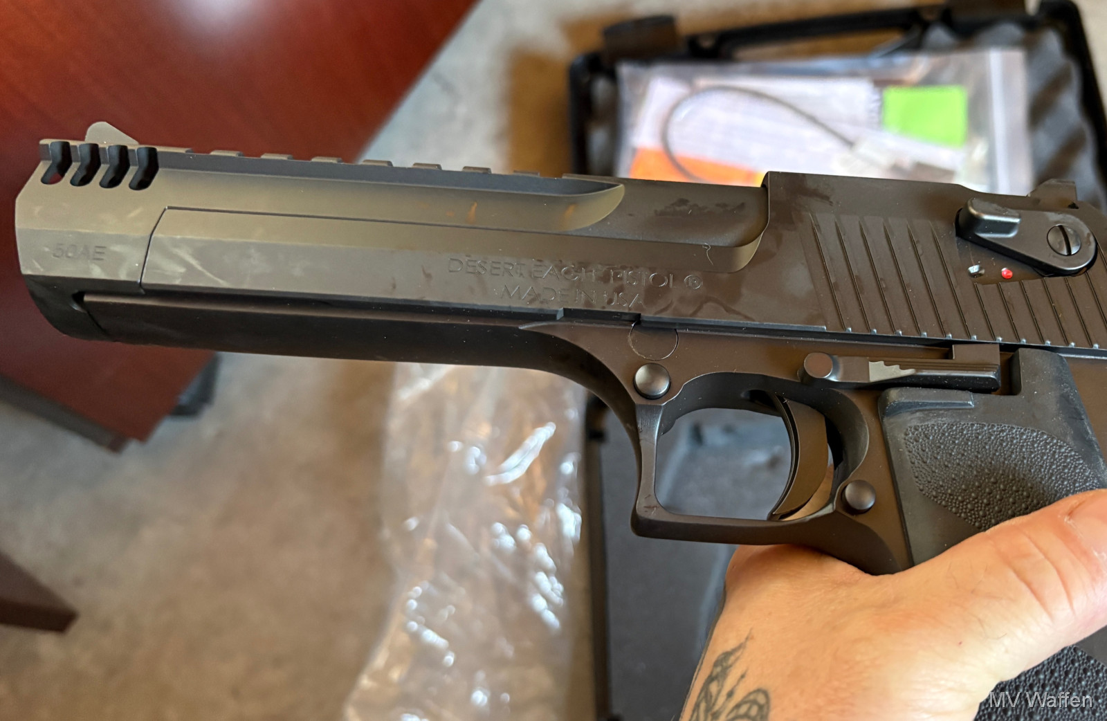 Die Waffe für grosse Jungs. Desert Eagle von Magnum Research im Wahnsinnskaliber .50 AE. Komplett ungeschossen, Nagelneu. Nichts für Spaghetti Arme. Zuschlagen bei der Gelegenheit. Direktversand an Europäische Händler möglich. Fragen Sie bitte nach den Versandkosten. Wie immer völlig unbearbeitet um Ihnen einen ehrlichen Eindruck des Zustandes zu ermöglichen.. Diese Sammelwaffe kann natürlich gerne, nach vorheriger Absprache in Wolfratshausen besichtigt werden