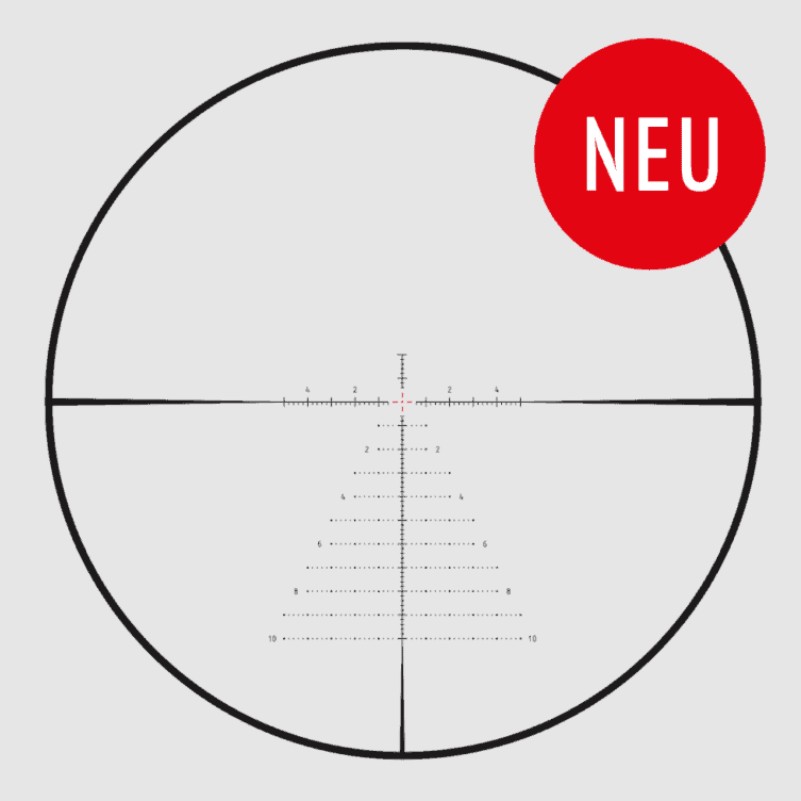 Das 5-25x56 LR bietet mechanische Präzision, optische Qualität und robuste Bauweise auf höchstem Niveauund erfreulich niedrigem Preis. Dabei bringt es alles mit, was der ambitionierte Long-Range-Schütze will: Eineungetrübte Sicht ermöglicht höchste Abbildungsqualität bis zum Sehfeldrand – dank aufwändiger Optikrechnungund spezieller Glassorten. Die M* Mehrfachvergütung sorgt für exzellente Lichttransmission, Kontrast und Farbtreue.Ein großzügiger Augenabstand bietet Sicherheit bei starken Kalibern. Das 34 mm Mittelrohr verspricht einenpräzisen Schuss auch bei großen Distanzen.Auch die Bedienelemente sind praxisgerecht gestaltet und erlauben eine gezielte Einstellung mit Handschuhenund bei schlechten Lichtverhältnissen. Das durchdachte, praxisorientierte Absehen in der 1. Bildebene ist speziellfür den ambitionierten Sportschützen entwickelt und zeigt seine Stärken auch bei der Jagd. Die 11-stufigeAbsehenbeleuchtung mit automatischer Abschaltung darf bei diesem leistungsstarken Gesamtpaket natürlich nicht fehlen.Alles in allem in Preis und Leistung erste Wahl!
