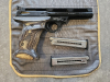 Zum Verkauf kommt eine halbautomatische Pistole des Hersttelers Smith & Wesson im Kaliber .22lr. Es handelt sich um das Modell 22A. Die Lauflänge (Bull Barrel) beträgt 5,5 Zoll. Die Waffe weist die auf den Fotos ersichtlichen Gebrauchsspuren auf. Die Waffe kommt mit einer in der Seite sowie in der Höhe verstellbaren Micrometervisierung mit einer Visierlinie von ca. 21 cm daher, welche auf einer Weaver-Schiene für mögliche Rotpunktvisierungen liegt. Es handelt sich um ein Single-Action Abzugsmechanismus. Das Abzugsgewicht liegt bei ca. 1.000 Gramm. Das Waffengewicht liegt bei ca. 1.300 Gramm. Die Sicherung befindet sich auf der linken Seite. Die mit Daumenauflage versehenen Griffschalen sind gleichermaßen für Rechts- und Linksschützen geeignet. Zum Lieferumfang gehören zwei 10-Schuss Magazine. Bei Fragen gern eine kurze E-Mail. Viel Spaß beim Bieten.