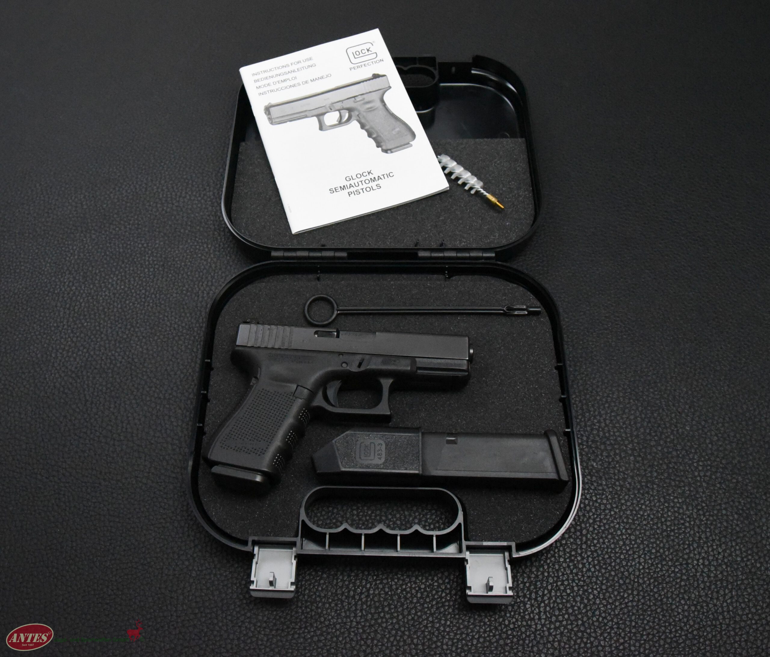 Mit original Glock Koffer, Reservemagazin und Werkspapieren.