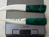 Von Privat: Meine Brieföffner aus Kinshasa/Zaire in den Neunzigern. Griffe aus Malachit, Klingen aus Knochen, Handarbeit! Kinhasa war zu der Zeit nichts für " Warmduscher ". Soldaten der Bundeswehr haben später einen Einsatz zur Absicherung der Wahlen dort gehabt und kennen die Verhältnisse vor Ort. Keine Gewähr und Rücknahme! Auf Anfrage: Malachit ist ein sog. " Halbedelstein ". Siehe dazu Angebote an anderer Stelle! Die Klingen siehe Text!