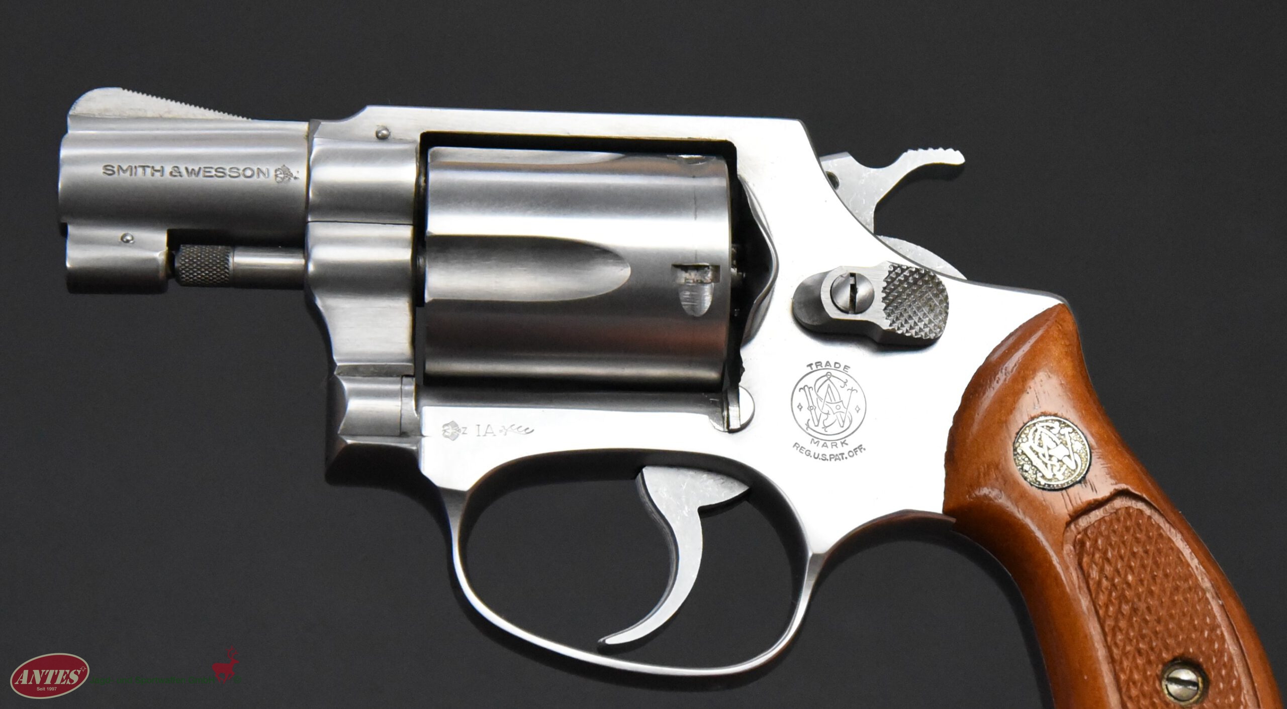 Original Smith & Wesson Holzgriffschalen mit Smith & Wesson Logo.