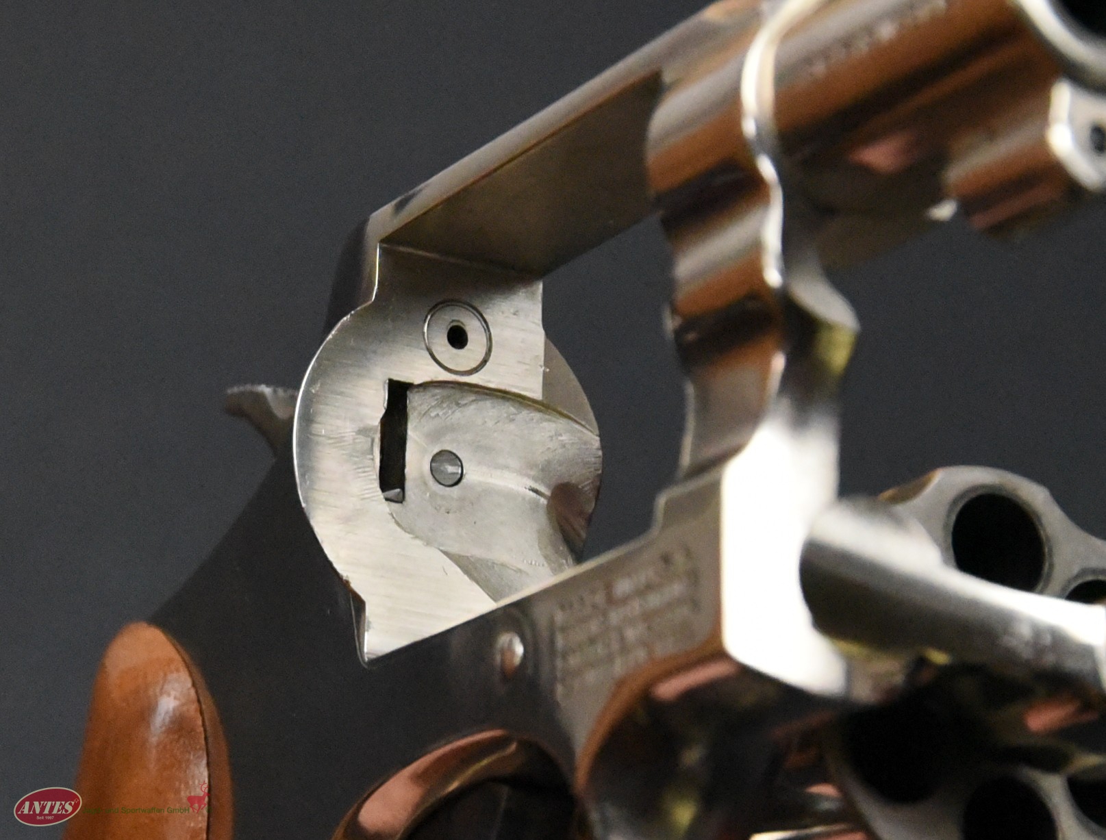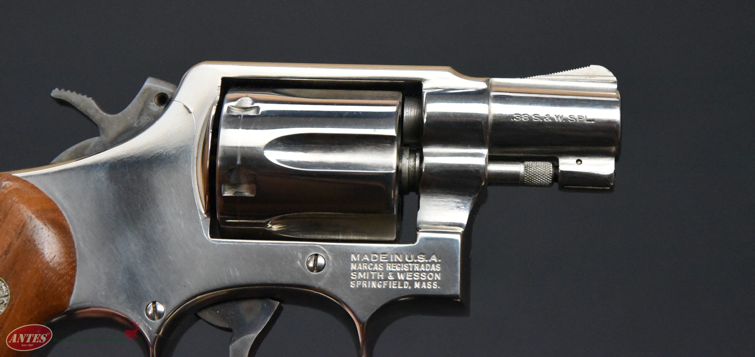 Mit original S&W Holzgriffschalen.