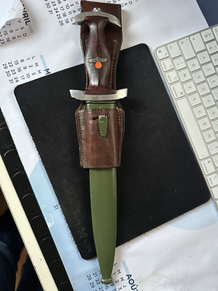 NAPOLA LEHRER DOLCH ,SEHR GUTER ZUSTAND,GRIFF HOLTZ,PARIERSTANGEN ALUMINIUM ,KLINGE IM SEHR GUTEM ZUSTAND MIT ,MARKIERUNG (HCH - KROM MUNCHEN) SCHEIDE GANZ EISEN ,KOPPELSCHUH LEDER