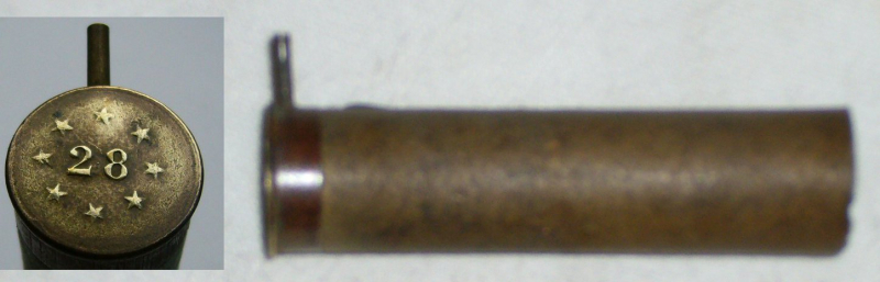 Angeboten wird 1 leere, ungebrauchte Lefaucheux-Schrothülse Kal. 28. Eine frühe Fertigung von Louis Bachmann in Brüssel, erhaben gestempelt. Diese Hülse lagerte auf dem offenen Dachboden der Büchsenmacherei ERDELT in Neustadt/Haardt (Weinstraße). 100 Jahre haben eine Menge Schmutz hinterlassen, der noch nicht ganz entfernt ist.