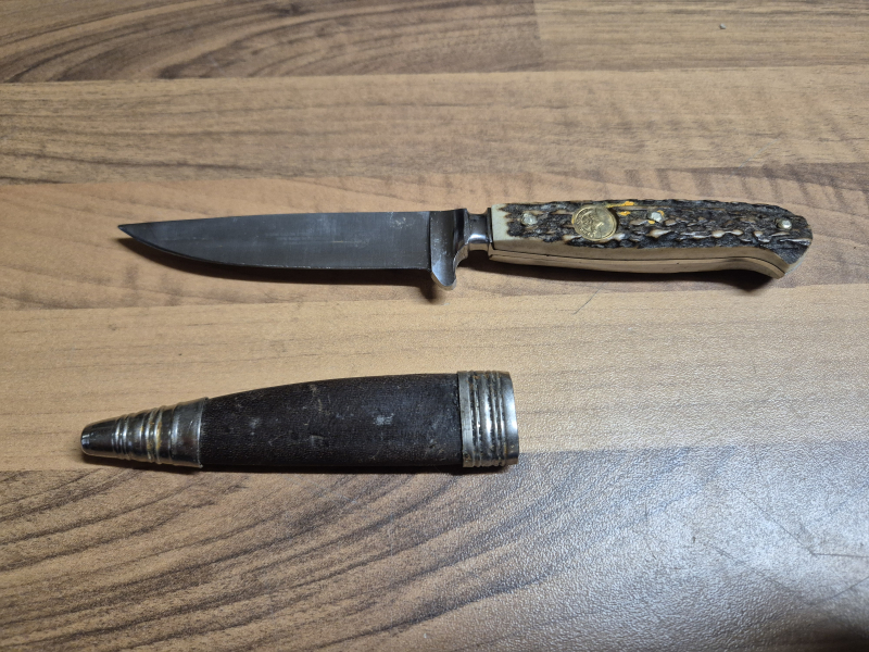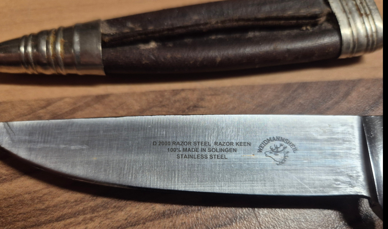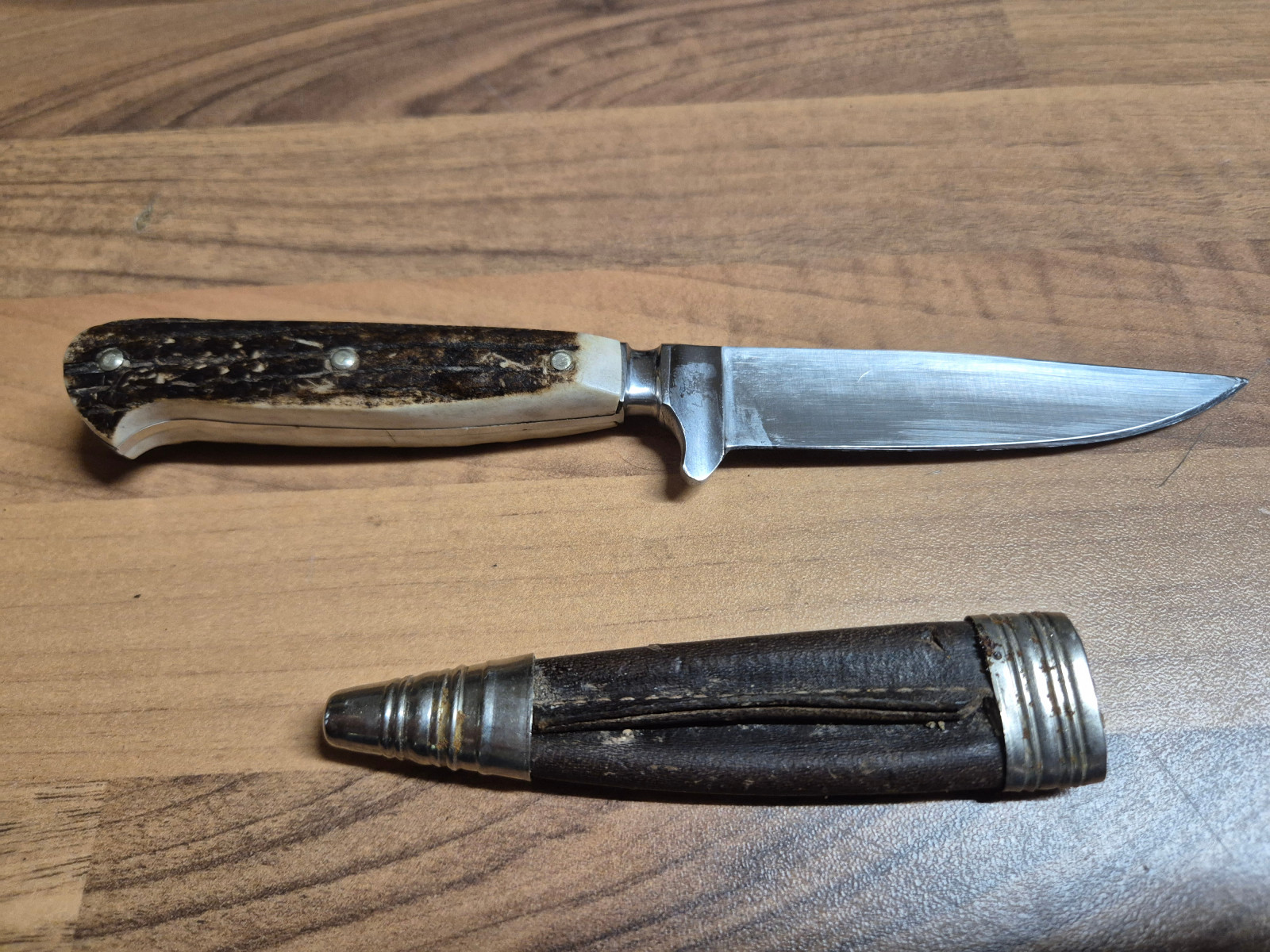 Hallo biete hier ein Jagdmesser plus Scheide (Nicker) Firma Weidmannsheil Solingen an. Messer ist gebraucht.