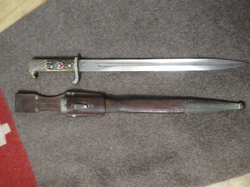 Dazu die originale Lederscheide in braun, sowie dem braunen Koppelschuh , Hergestellt: Joseph Moll in Goch 1937
