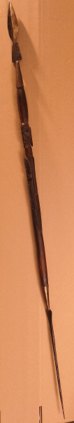 Samburu Speer, 2000 von Familie Winters (Uhyst) aus Afrika für meinen Vater mitgebracht (die brachten von ihren Rundreisen im Auftrag Sachen mit, meistens eher Wunst, aber auch sowas auf Anfrage). Sollte Original sein. Vater hat das Blatt auf einer Seite graviert (siehe Foto 2)