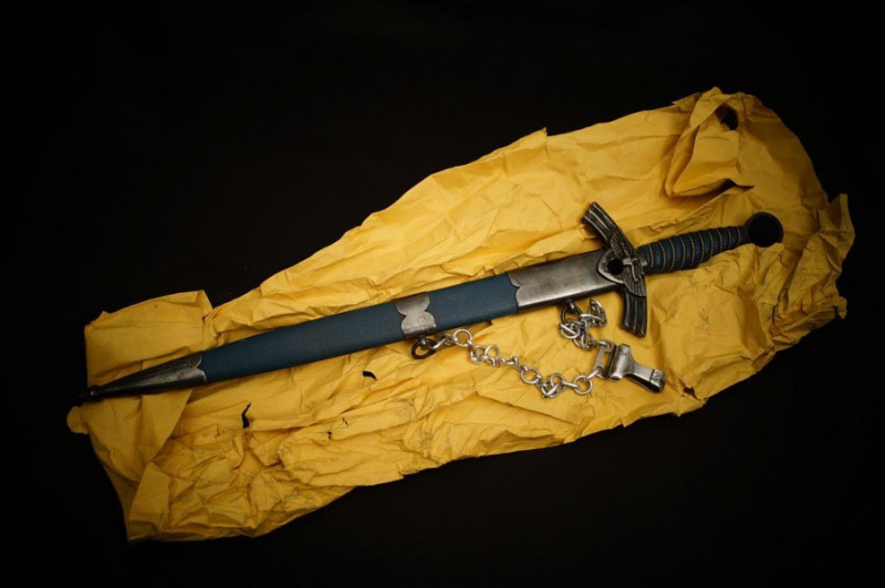 Artikelbeschreibung: Zustand siehe Bilder. Original WK2. Bilder sind Gegenstand der Beschreibung. Stück ist nahezu ungetragen ! War jahrelang weggepackt - alle Teile am Dolch und der Scheide aus versilbertem Buntmetal. Die Versilberung ist komplett - oder fast komplett angelaufen in den Jahren. Das Stück ist ungeputzt !!! an einigen Stellen kommt die makellose Versilberung durch. Keine Kratzer im Leder oder in den Beschlagteilen. Ikarus des NXFK auch ohne Schäden. Der Dolch wurde scheinbar direkt aus dem Verkehr gezogen in dem Zustand und durch das neue NXFK/DLV Fliegermesser ersetzt. Griffstück aus Holz und wie die Scheide mit Saffianleder bezogen. Klinge aus Stahl, vernickelt - ohne Makel ! So wohl kaum noch zu findendes Stück !!!