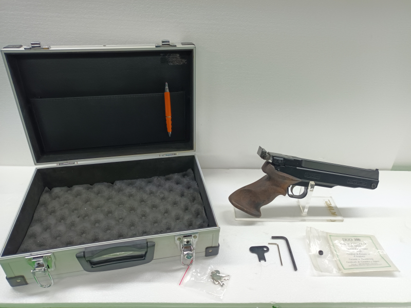 TELEFON 07356-9509284 ---- 1. Match Luftpistole SGS DUO 300 / Hersteller Secolo Italy. MEGA SELTENE Match LUPI / Waffen Nr. 000266 / Cal. 4,5mm (.177) Diabolo. 2025 ÜBERHOLTE WAFFE : Neuer Kolben / Neue Dichtungen (Ersatzdichtung liegt noch eine Zusätzlich mit dabei) Komplett Überholt 7,5 Joul / 168 m/s. Werkzeug / Bedienungsheft / Waffen Koffer inbegriffen. Brünierung tief schwarz. Der Griff hatte einen Riß, hier auf Bild festgehalten. Tut aber nicht wirklich was zur Sache. Der Griff ist schon seit Jahren im gleichem Zustand. Griff ,,RECHTS,, / Größe UNIVERSAL M/L/ fast schon XL. Super gelößt. Die Waffe liegt Mega in der Hand und ich habe Hand Größe M-L. Der Lauf: gezogen / Lauflänge: 215 mm / Abzug: justierbar / Visierung: horizontal und vertikal justierbar. Habe die Waffe auf 6/8 und bis zu 20 Meter geschossen. Damit kann man Problemlos weit schießen und mach Höllich Spass. Da ein neuer Kolben verbaut wurde, geht das Spannen etwas staff und sollte nicht am System, sondern am Griff gespannt werden um nicht die Visierung zu verstellen. Nach Kauf kurz Anrufen, ich erkläre dem Käufer dann das Laden. Die Waffe ist jeden Cent Wert ob für Freizeit Schützen oder im Vereine schießen ist diese Universal Waffe hervorragend Einsetzbar. HABT SPASS UND GÖNNT EUCH MAL WAS.