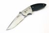 Ergonomisch strukturierter Griff. Das Messer mit Liner Lock Verschluss. Blanke, satinierte Griffmontur. Der Griff mit satinierten Backen aus Edelstahl versehen. Die Verriegelungsplatine aus Edelstahl. Die rutschfesten Griffschalen aus Zytel – Kunststoff. Griffschale terzseitig mit einem Gürtelclip ausgestattet.