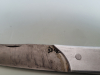 Grabenmesser aus 2 WK Zeit , vermutlich Frankreich wegen Stempel auf den Erl . Metall Griff , Hand gefertigte Holz Scheide . Zustand mit alterspuren aber in gute Kondition .